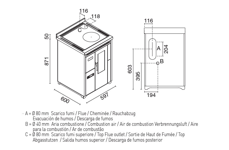 Pelletipliidil on metallist pliidiraud ja pliidi detailid on Musta värvi.(Nero)
